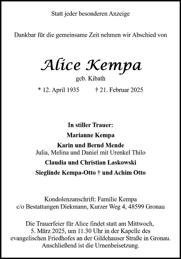 Alice Kempa geb. Kibath