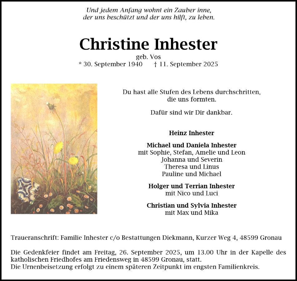 Liebe Christine, ich wünsche Dir eine gute Reise